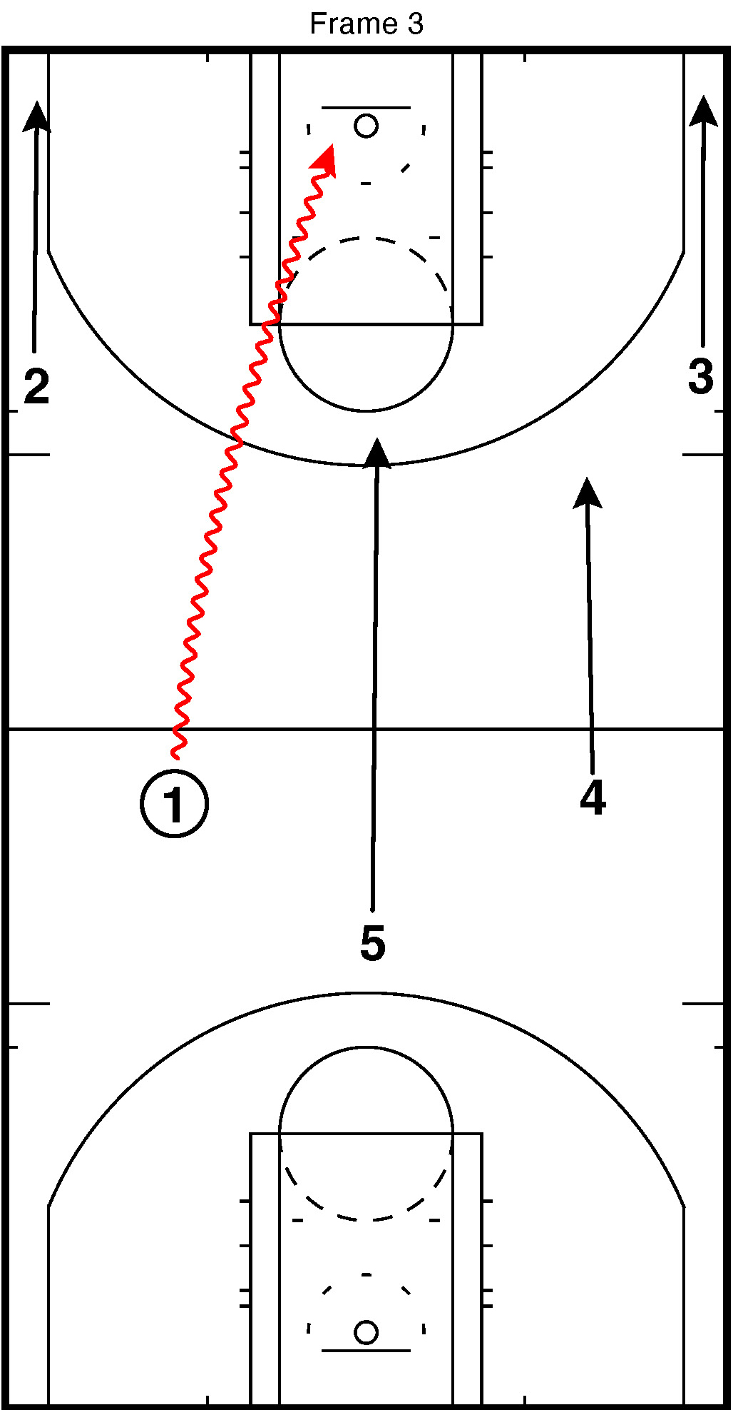 - 5 ha corso come rim-runner nel dunker spot e si riloca immediatamente nel dunker spot opposto (Frame 8).