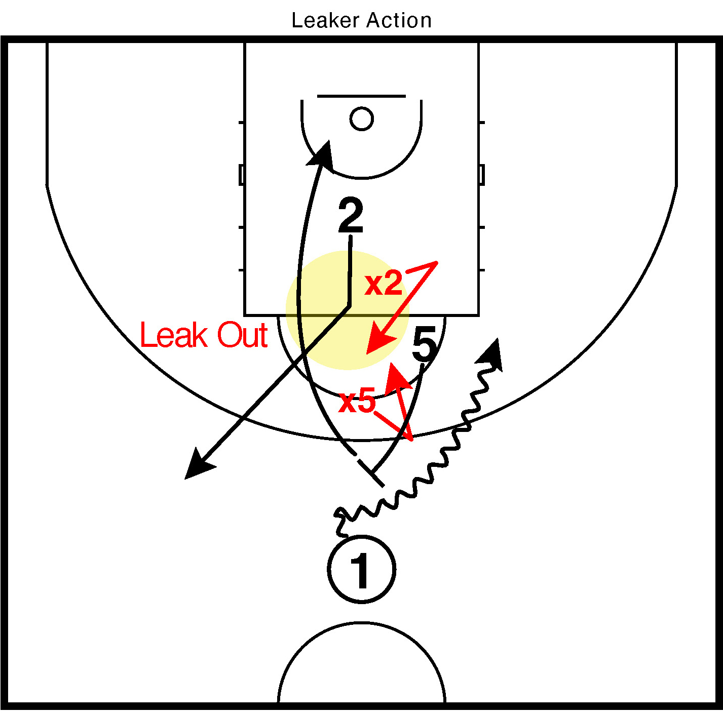 La leaker action rappresenta una lettura evoluta dello Spain Pick & Roll. In questa variante il giocatore incaricato di portare il blocco cieco sul difensore del lungo non esegue realmente il blocco, ma simula l’azione e poi “salta fuori” rapidamente verso il perimetro (leak out).